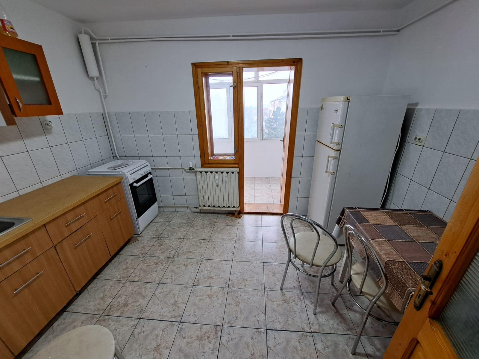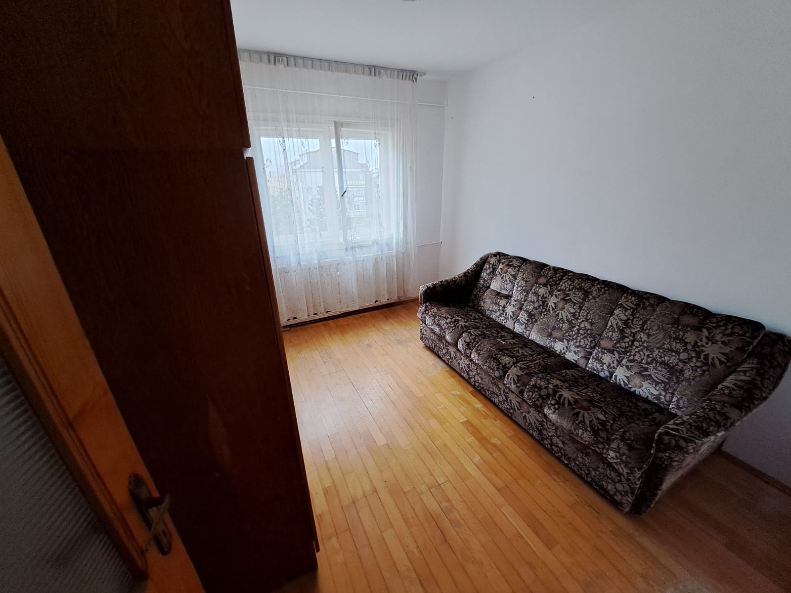 Apartament cu 3 camere decomandate, situat la etajul 4 cu sarpanta, 2 bai, balcon inchis, tamplarie PVC cu geam termopan, incalzire de la centrala orasului, gresie, faianta, parchet.